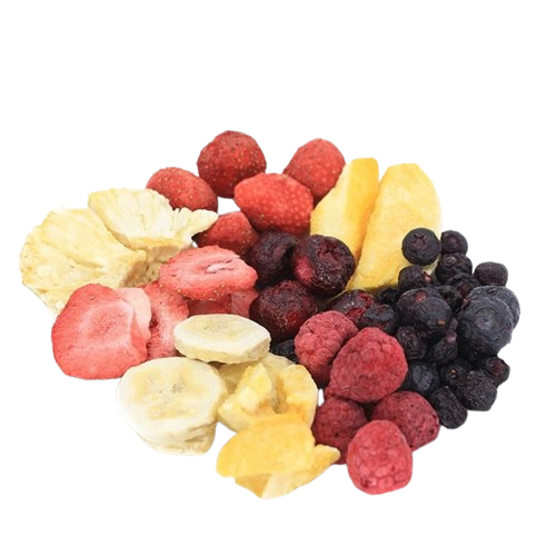 • من بين أبرز الفوائد أيضًا أن الفواكه المجففة بالتبريد تحتوي على سكريات طبيعية مركزة تمنح الطاقة بسرعة، مما يجعلها مثالية للرياضيين أو الأشخاص الذين يحتاجون إلى طاقة سريعة خلال اليوم. كما أن احتفاظها بشكلها الطبيعي وطعمها اللذيذ يجعلها خيارًا مميزًا للأطفال والبالغين على حد سواء، ويمكن تقديمها كوجبات خفيفة أو إضافتها إلى وجبات الإفطار لإضفاء قيمة غذائية عالية.